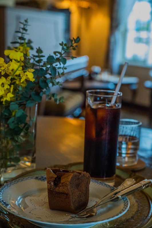As you approach the cafe, the lush ivy creeping over its exterior may initially catch your attention – it gives the building a whimsical, almost enchanting appearance. Ascend to the second floor where the cafe awaits, complimented by an antique shop on the first floor that showcases an eclectic mix of treasures. Here, the ambience is at once charming and inviting, echoing the warmth of a traditional English tea setting. Vinyl records play softly in the background, adding to the vintage vibe that surrounds you.